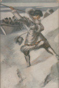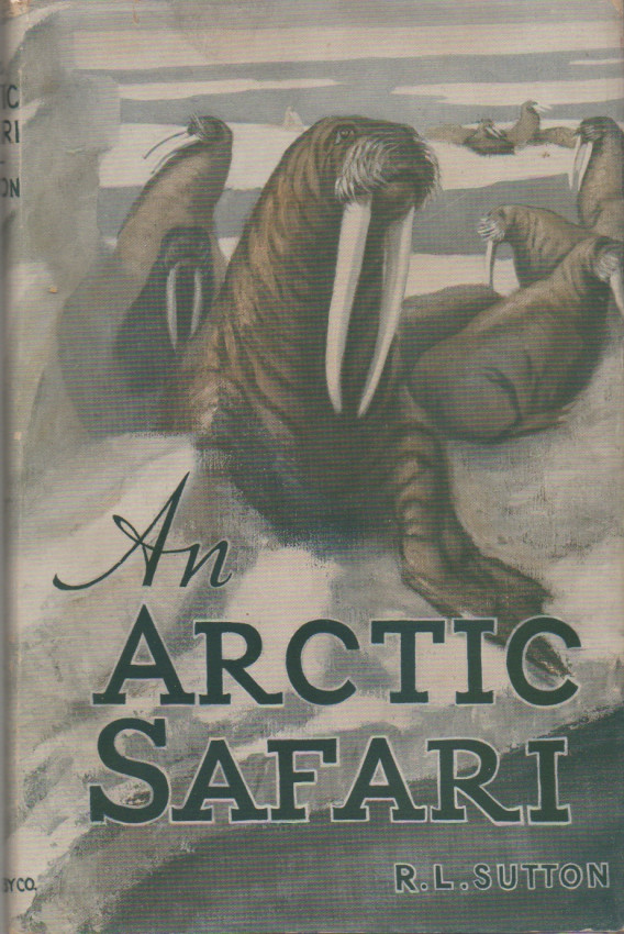 Hunting seal, walrus, and polar bear in the Arctic region north of Norway. The author was a world-wide traveler and hunter, and this was his northernmost adventure (Heller, 381). Original blue cloth with walrus head on upper board, very light fading to top and bottom. Printed on coated paper, a high quality production. Well illustrated with text photos. In a very good+ dramatically painted dust jacket depicting an Eskimo hunter about to harpoon a bull walrus. Just a bit of rubbing at the jacket's spine head.