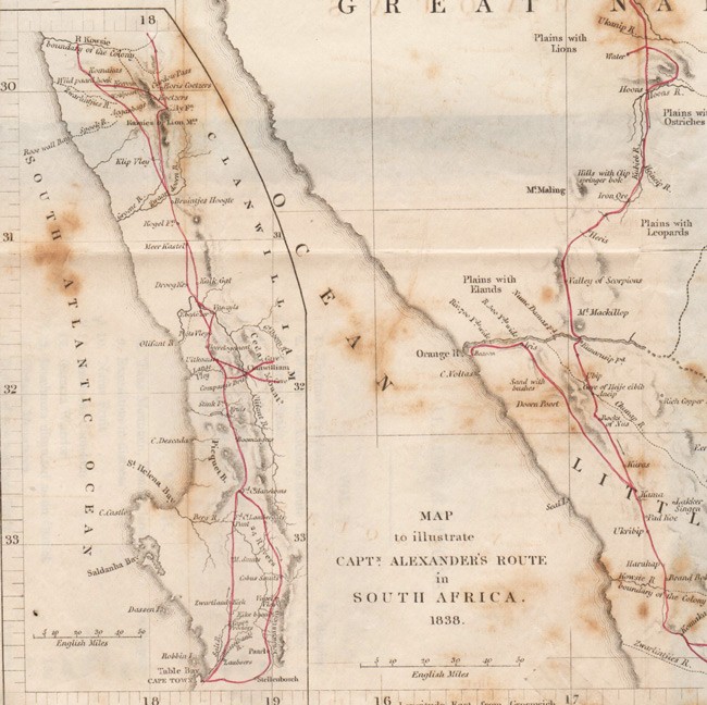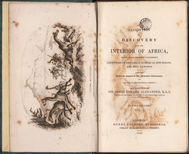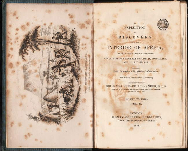 Mendelssohn (Sydney) South African Bibliography, volume 1, pages 20-21: 'He proceeded to Namaqualand and Damaraland, which countries were very little known at the time. Leaving Cape Town in 1836, he traversed these regions in an ox wagon, and went through a large part of South West Africa arriving at Walvisch Bay almost exhausted with the difficulties of travel and want of water. He succeeded in obtaining a good collection of zoological and other specimens, many of which were at that time unknown to the scientific world. The volumes contain an account of the social condition of the Namaquas, Bushmen and Damaras.'