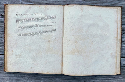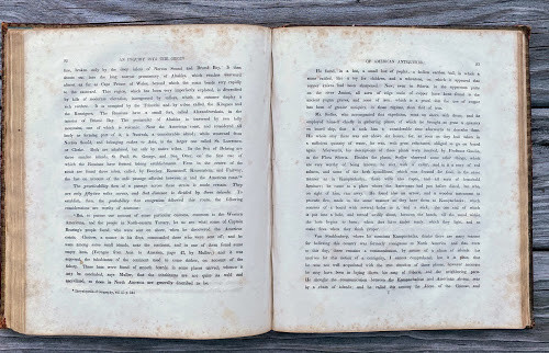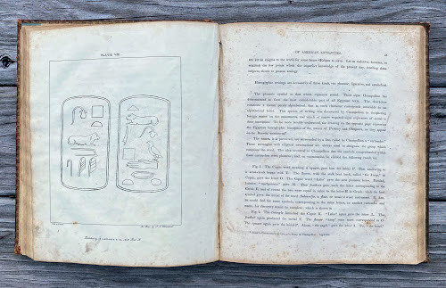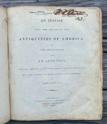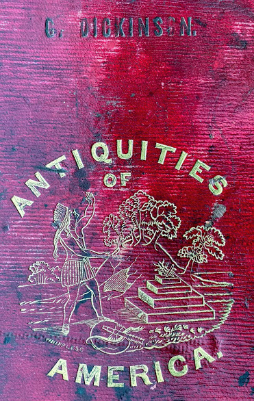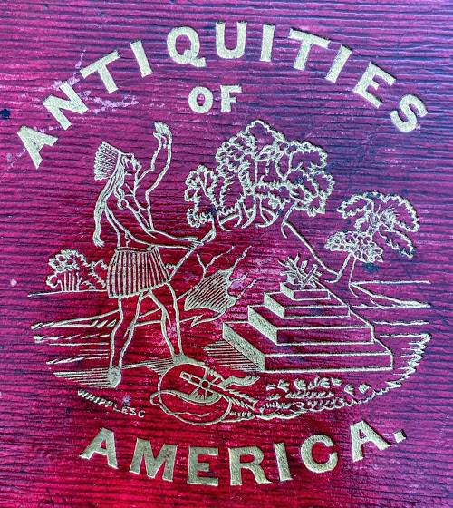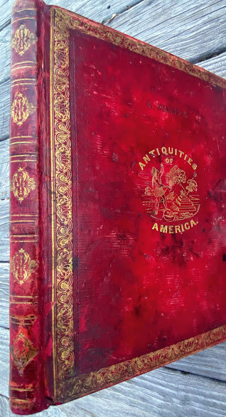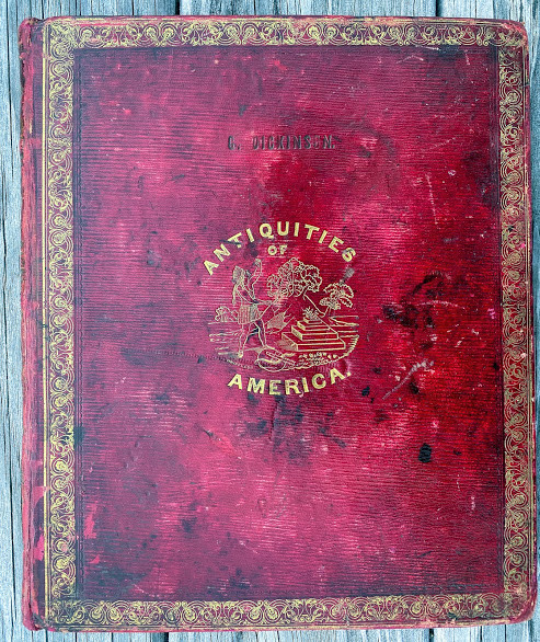 An Inquiry into the Origin of the Antiquities of America. … with an Appendix, containing Notes, and "A View of the Causes of the Superiority of the Men of the Northern Over Those of the Southern Hemisphere." By James Lakey. Cincinnati: published by N.G. Burgess & Co. stereotyped by Glezen and Shepard, 1839. Large quarto (11 ½ x 9 ¾ in; 293 x 248.mm). Pp. [1-] 6 – 142. Ten lithographed plates (5 hand-colored), all drawn on stone by J.A. Cleveland, printed by Louis Samyn of Cinncinati. (Missing the large folding frontispiece [as often], spotting, toning, soiling, two leaves loosely inserted).