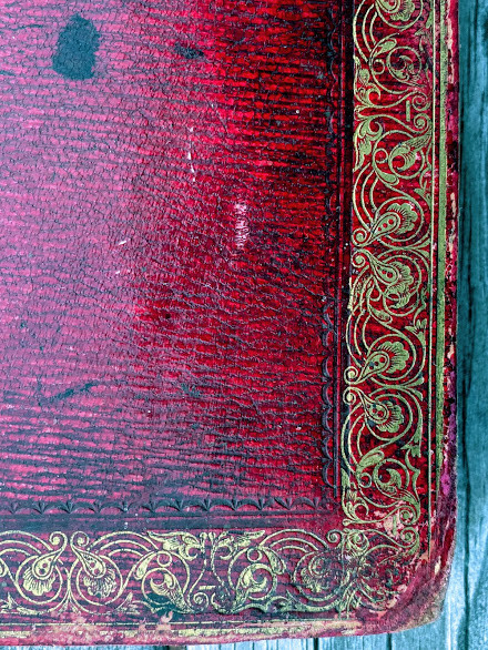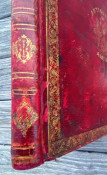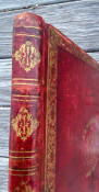 Original red morocco by G. Dickinson, covers with decorative borers in gilt and blind, illustrated gilt title vignette [signed ‘Whipple sc.’]at the center of each cover, the upper cover with the binder’s name tooled in gilt ‘G. Dickinson’, spine in seven compartments with semi-raised bands, the bands tooled in gilt and blind, repeat decoration in gilt in each compartment, gilt turn-ins, small green binder’s label to front pastedown ‘G. Dickinson / Book Binder.’ (scuffing and soiling, joints rubbed but generally still solid, a couple of small splits to the upper joint, corners bumped, endpapers toned and spotted, old adhesive to rear pastedown). Provenance: partially obscured ownership inscription, dated 1843; Sarah E. Harrod (early signature on front free endpaper); Ambassador College (Pasadena, California, ink stamp to title and rear pastedown. NB. the College closed in 1997).