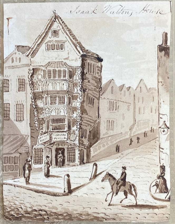 A charming work: a view of the house that the author of the ‘Compleat Angler’ occupied from 1627 to 1644. It was demolished in the middle of the 19thcentury.