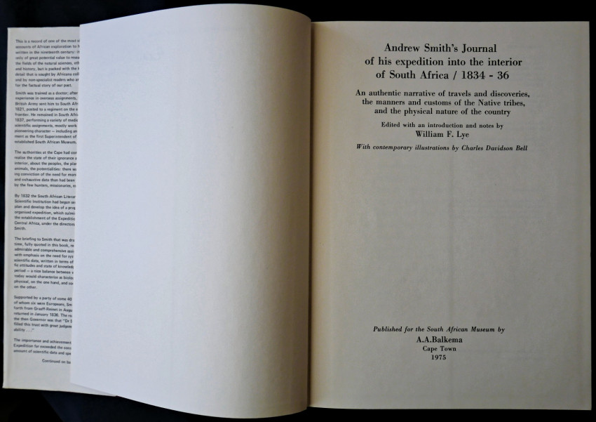 Smith (1797-1872), son of a shepherd, was born in Scotland. His family apprenticed him to a medical doctor, and he graduated as a doctor in 1819, having joined the army in the interim. Smith arrived at the Cape in 1821. He was then sent to Grahamstown, where he was nominally attached to the Cape Regiment, but travelled extensively around the frontier. It was here that Smith began to record notes on his environment, and collect samples of what he saw. He also encouraged local tribesmen to bring him specimens, skins, and day-to-day objects they used. In 1825 Lord Charles Somerset acceded to his request to set up a museum. In that year Smith moved to Cape Town and the South African Museum was established. Smith had been promoted within army structures, but spent most of his time working at the Museum.