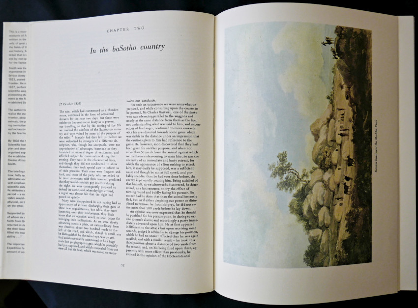 In 1834, supported by a party of 40 members, Smith once again set forth from Graaff-Reinett on an expedition into the interior, returning in 1836 to great acclaim by the then Governor who was most impressed by Smith, for the importance and achievements of the Expedition far exceeded the considerable amount of scientific data and specimens collected, especially considering the period was one of turmoil in the territory covered.