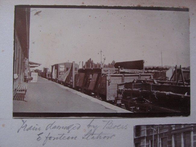 Selected captions: Train damaged by Boers, E/Fontein Station; Cape Mail; Hospital Train; Mounted Rand Rifles; Field Marshall Lord Roberts Inspection; Armoured Train; Mafeking Day,Mansion House .