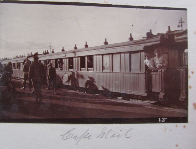 Album contains Johannesburg, Railways and Personal Images. The stamps ( with Germiston date-stamps ) are overprinted E.R.I. (Edward Rex Imperator).This coincided with the British occupation of the Transvaal and the stamps were issued between January 1901 and mid-1902. ( Peace was declared on 31 May 1902 with new Transvaal Colony stamps having been issued the previous month). Images are a selection of photographs in the Album. Not all photographs are captioned.