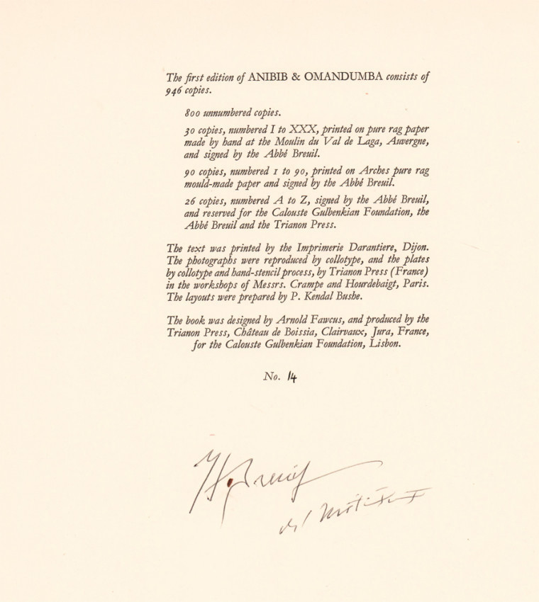 90 copies numbered 1 to 90, printed on Arches pure rag mould made paper and signed by the Abbé Breuil. This is no 14