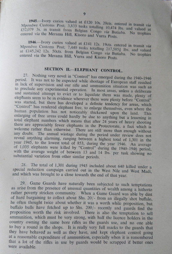 Reports by Game wardens and Game Rangers .