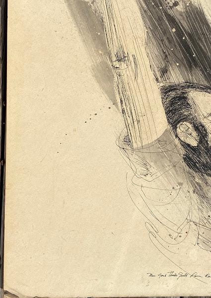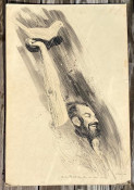 Original artwork, featuring Pete Seeger, titled “New York Theatre Guild Peace Rally – Times Square Nov 13, 1969’, signed ‘George Shawe’. [N.p.: undated]. Pen, ink and wash, with scratching out, on ‘whatman artist board (30 x 20in; 672 x 508mm). (Light toning, light surface soiling, some bumps, one small split).