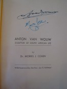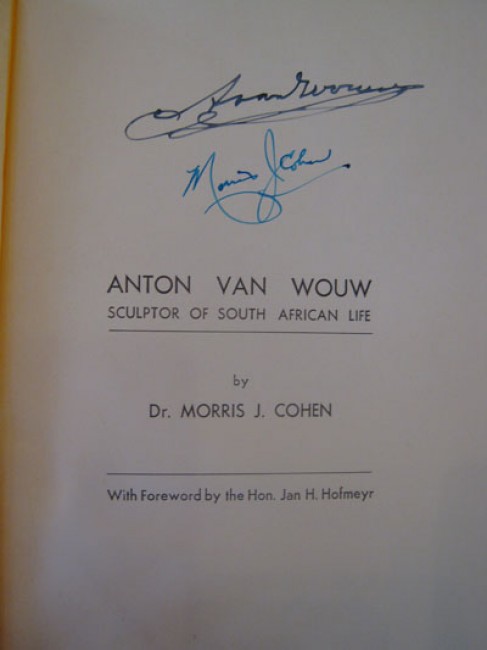 Signed by Anton van Wouw and Morris Cohen. This book was also the ex-libris copy of Morris cohen, sticker on front paste-down endpaper. Hard to find with the dust jacket. 44p. Dust jacket has a couple of closed tears to upper and lower edge, and corners. Neatly repaired on inside.