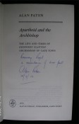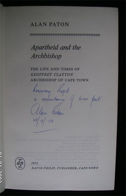 ’The Life and Times of Geoffrey Clayton’. Inscribed and signed on the title page by Paton: Rosemary Pagel a remembrance of times past Alan Paton 28/9/73.