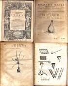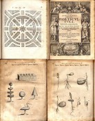 196 pages, engraved title page, 6 engraved plates with 28 figures of planting, grafting and topiary, full vellum, ties missing, several notes and inscriptions on the front paste-down endpaper, embossed bookplate on the verso of the free endpaper, text of both volumes heavily browned throughout with the exception of the 23 plates of garden tools etc.