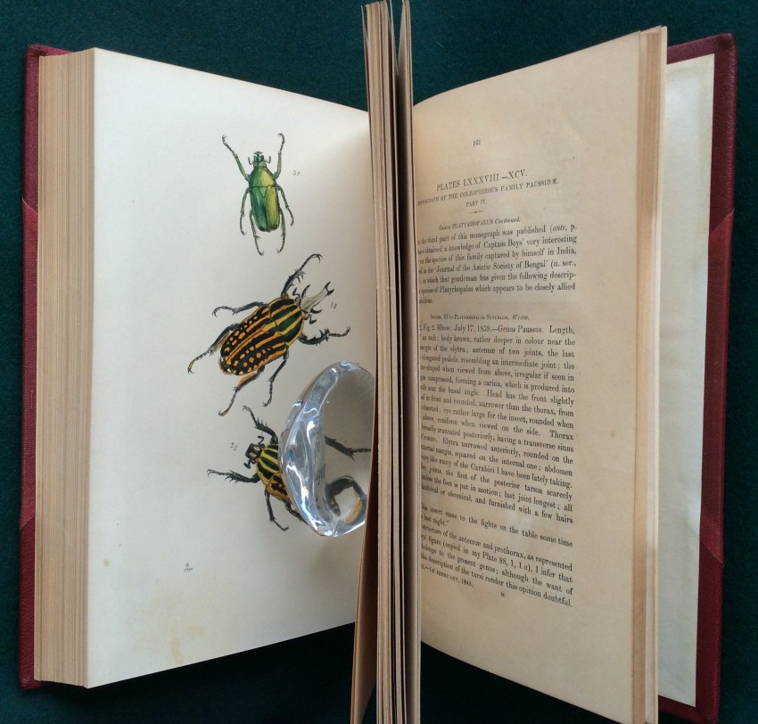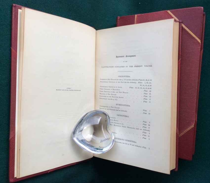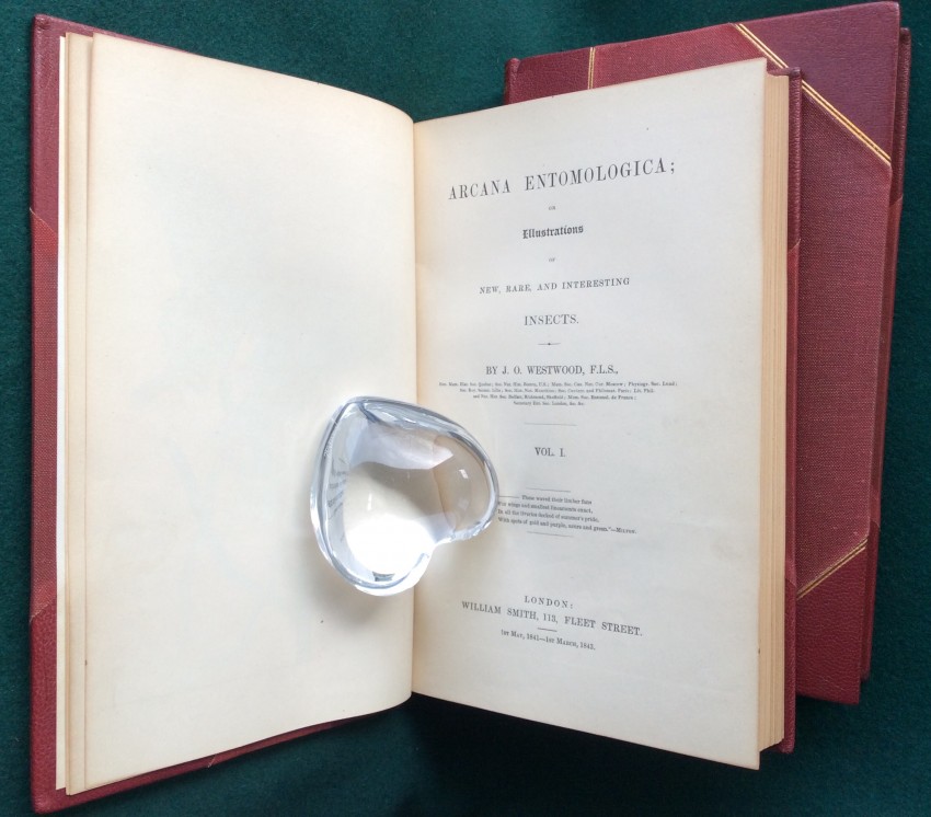 A fine copy of the de luxe hand-coloured version of this spectacular work. The beautiful plates of this work are mostly beetles, butterflies and moths from around the world but including Africa, Asia and Australia. There are two different issues of this work: the standard issue with uncoloured plates and the present de luxe issue with all of the plates beautifully hand-coloured.