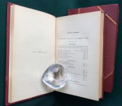 Later red half morocco over red cloth-covered boards, spine in six compartments with raised bands, decorated and lettered in gilt, covers ruled in gilt, top edges of book block gilded.