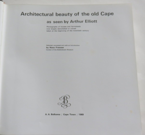Elliott came to the Cape in 1900. Although he was not a professional photographer, he became interested in photographing his surroundings. Elliott's collection (now owned by the State) provides an invaluable record of the Cape in the early 20th century. Taken mainly in the winter months, his architectural photographs are unrivaled.