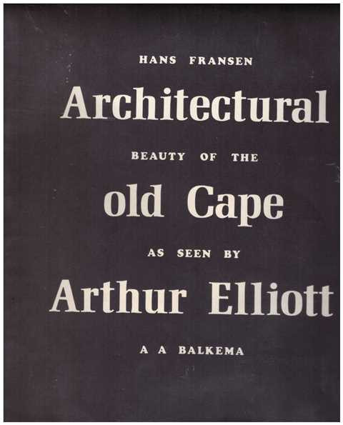 Elliott came to the Cape in 1900. Although he was not a professional photographer, he became interested in photographing his surroundings. Elliott's collection (now owned by the State) provides an invaluable record of the Cape in the early 20th century. Taken mainly in the winter months, his architectural photographs are unrivaled. Subsequently reprinted in differing editions, this is the first edition, and in a splendid dust wrapper.