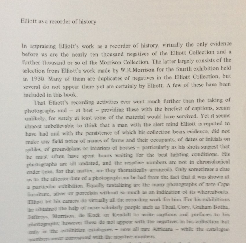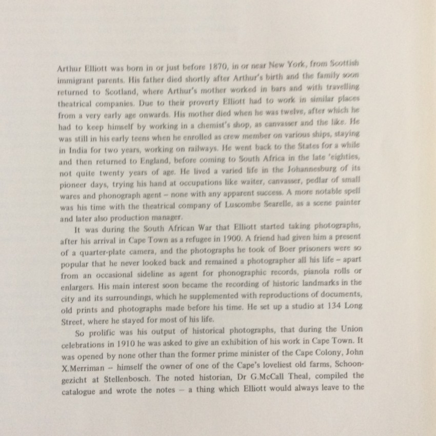 The images show a small selection of Elliott's much-admired early-twentieth-century photographs. The Elliott Collection, comprising some 10,000 mainly uncaptioned and undated prints and negatives, is housed in the Archives in Cape Town.