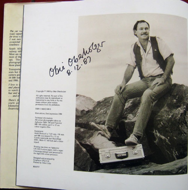 Pictorial boards, colour photographs throughout. Signed by photographer on back of title page. Rand Merchant Bank gift letter tipped into ffep, which is also signed. Dust jacket has three small tears to rear cover, repaired neatly on the inside. \"South Africa has around 60 communities and railway sidings with names ending in \'fontein.\'\" This, the author\'s first book, depicts life in these places.