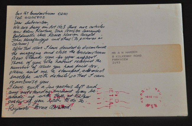 Lot also includes the large post card featuring a work by Norman Catherine, telling subscribers of its demise.