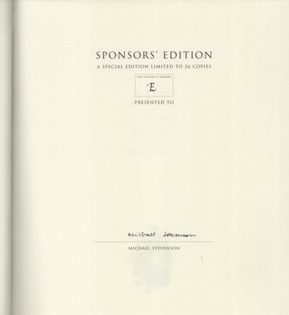 The Sponsors' Edition is limited to 26 copies signed by Michael Stevenson.
