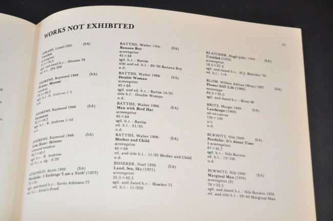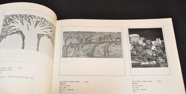Catalogue of the Exhibition of the Unisa Collection - lots of works by Pierneef, Preller, Battiss, etc. Very comprehensive at 91 pages with black and white illustrations of the works throughout. Introduction by Karin Skawran. Also includes a list of works not exhibited. In excellent, clean condition.