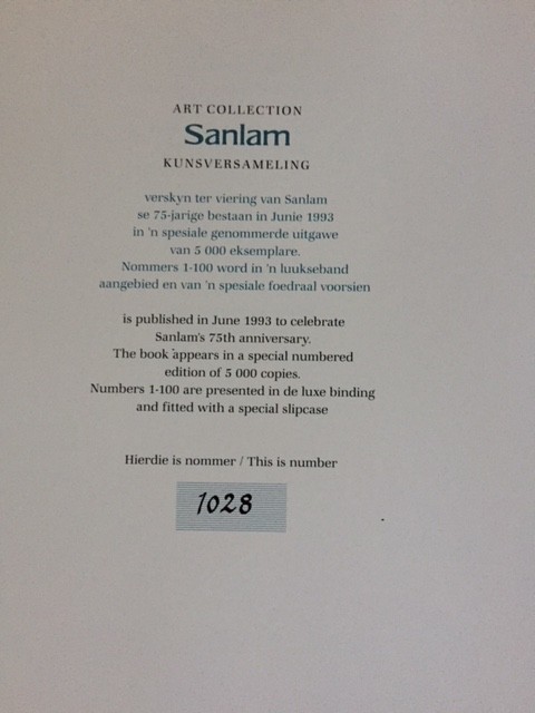Published to celebrate Sanlam's 75th anniversary. Contains 80 plates arranged in alphabetical order according to the artists' names. The Sanlam Art Gallery opened in 1991. Well-advised by experts, the company has continued to purchase art for over twenty years, building up an impressive collection.