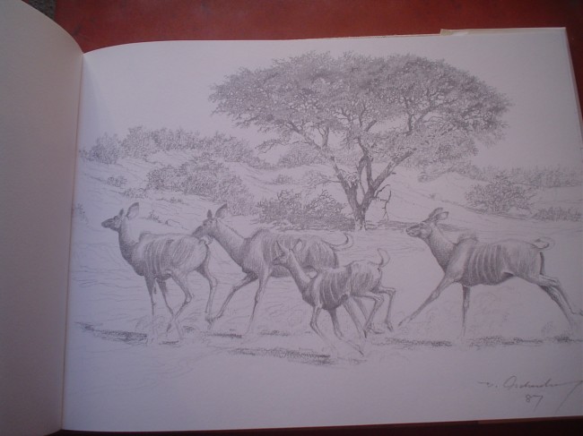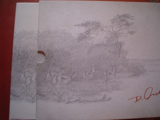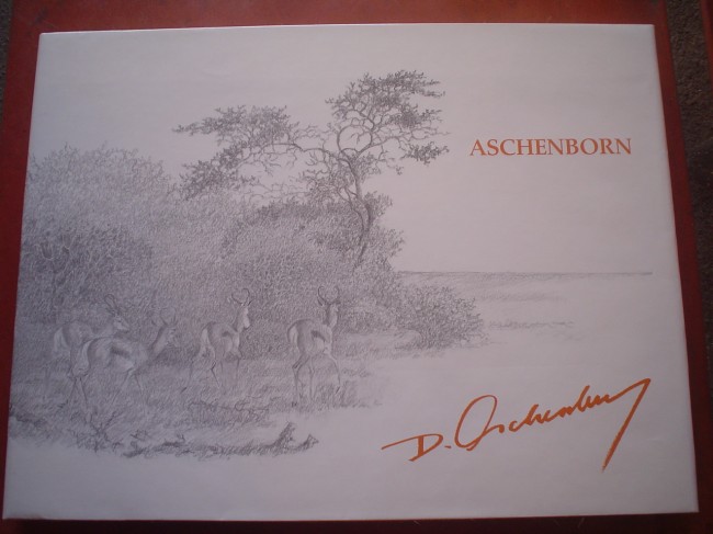 Large book on some of the art of Aschenborn. In the original cloth boards. 96 pages. The text next to pencil sketches in English, Afrikaans and German. Aschenborn's numerous plant and animal sketches collected over many years form the basis of this book. In a slipcase. This book is in splendid condition.