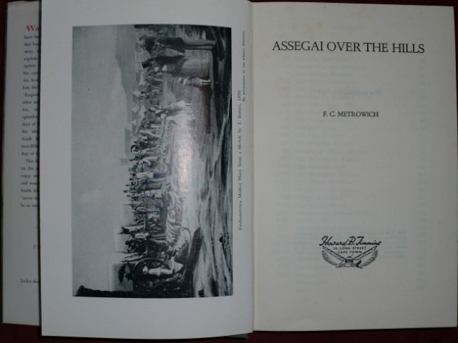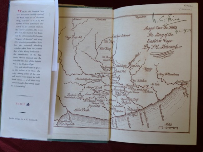 'Whilst the historical facts have been most carefully checked, this book reads like an adventure story, enlivened as it is by the exploits of such picturesque characters as the militant chaplain, the convict constable, the eccentric Scot, the Maid of Fort Beaufort, the sttler destined to become "Emperor of America", and many other amazing personalities. Here, too, are recounted absorbing episodes taken from the pioneer days of the Albany Settlement, - the identification of the first South African diamond and the incredible life-story of the Baboon Boy of the Eastern Cape. This book should take its place on the shelves of all those who enjoy stirring yarns of the men and women who helped to build South Africa... of all those who "never thought that history could be so interesting." Book condition: excellent, end-papers age-toned, owner inscription on f.f.e.p., edges slightly spotted; jacket very good, folded edges rubbed and some wear to spine ends, rubbed, but still bright. Jacket now protected by a Brodart plastic sleeve. (215pp.)