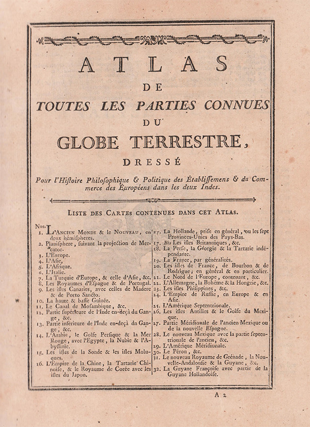 This atlas was published to accompany Guillaume Raynal's 1788 Historique Philosophique et Politique des Etablissemens et du Commerce dans les deux Indes.