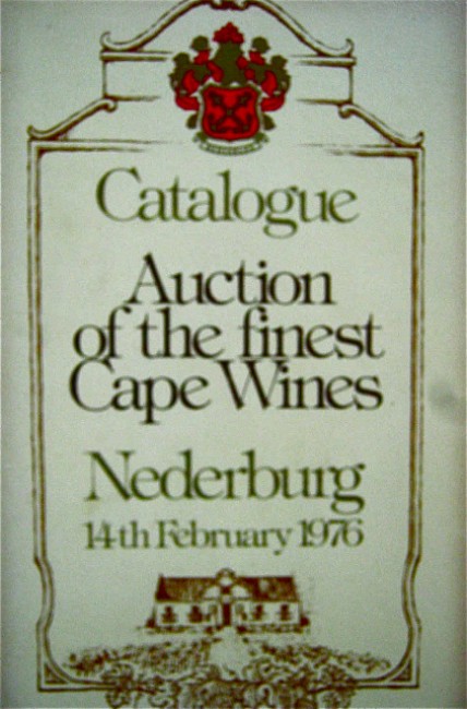 The catalogue comprises 60 pp of tumbled English and Afrikaans text in card wraps printed on 4 sides. This copy carries the previous owner\'s tasting notes in ink on the seven cases of wine he bought at this auction. This copy would have been rated fine without the notes, which, however, represent much of the value of the lot.