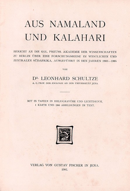 A SOUTH AFRICAN BIBLIOGRAPHY volume 4 page 172: 'An account of a scientific expedition to study the geography, fauna, flora and native tribal life of the central and southern South West Africa, the Namib Desert, and portions of the Kalahari Desert, Including Bushmanland and Bechuanaland.' Schapera (I.) SELECT BIBLIOGRAPHY OF SOUTH AFRiCAN NATIVE LIFE AND PROBLEMS E173 (page 53) 'Valuable description of subsistence activities, material culture, and relations with Bantu, of the Central Kalahari Bushmen; also describes material culture of Namib Bushmen'.