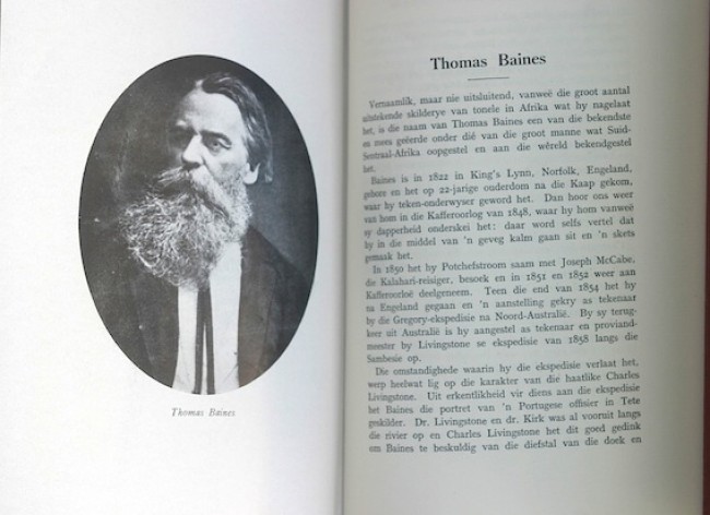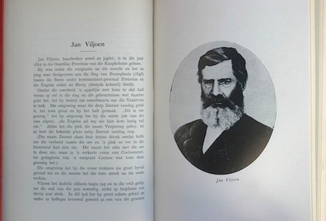 Contents: Jacobus Coetsee, Hendrik Hop, Willem van Reenen, Pieter Brand, Kolonel Jacob Gordon, Pieter Jan Truter, Dr Cowan en luitenant Donovan, Eerw R Anderson, Dr W.J. Burchell, Kaptein Cutfield, Coenraad du Buys, Die familie Kruger, A.G. Bain, David Hume, R. Schoon, Gert Maritz, Kaptein sir William Conwallis Harris, Louis Trichardt, Karel Trichardt, Andries Hendrik Potgieter, Roualeyn Gordon-Cumming, William Robinson, H. Reader, William Wood, William Charles Baldwin, Jan viViljoen, Petrus Jacobs, Henry Hartley, Joseph McCabe, J.H. Wilson, Samuel H. Edwards, John Dunn, Frederick Green, William Cotton Oswell, Majoor Frank Vardon, Murray of Lintrose, Martinus Swartz, Paul Zietsman, Ontdekking van Victoria Waterval, James Chapman, C.J. Andersson, "Lang" Willem Prinsloo, Adam Render, Thomas Leask, George Westbeech, George Wood, St. Vincent Ernskine, George Arthur "Elephant" Phillips, Professor Wahlberg, Swithen Wood, Carl Mauch, Thomas Baines, Zimbabwe, Reuben B. Beningfield, Frederick Courtney Selous, Aantekeninge oor die Oostelike Grens + Bylae.