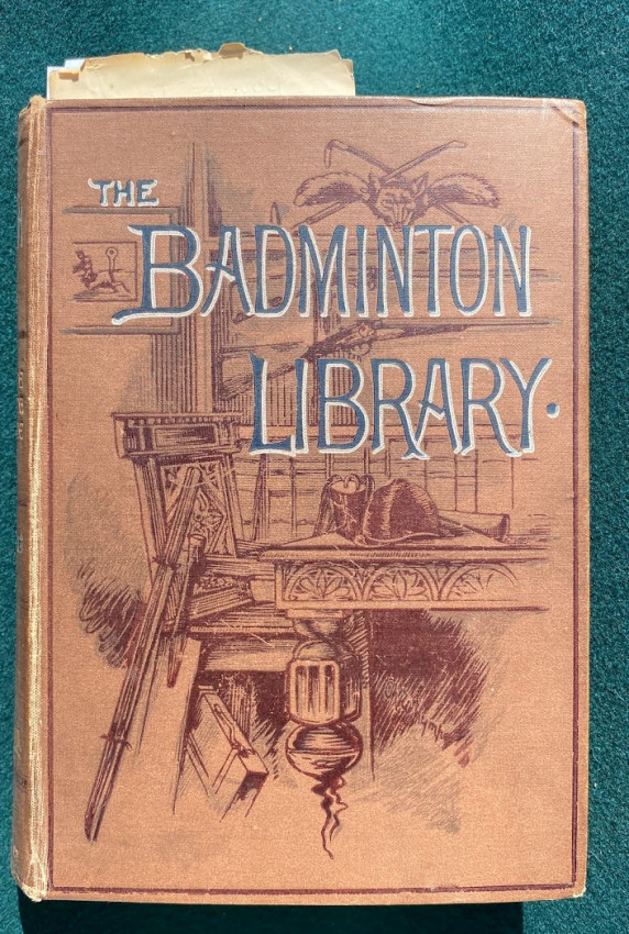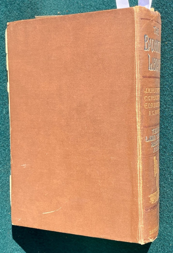 [Badminton Llibrary] Tennis by J.M. Heathcote ... Lawn Tennis by C.G. Heathcote... Rackets by E.O. P.-Bouverie. Fives by A.C. Ainger ..... Second Edition. London: Longmans, Green, and Co., 1891. London: Longmans, Green, and Co., 1891. Octavo (7 3/8 x 5 1/8in; 187 x 130mm). Pp. [i-ii, i-]vi-xiv; [1-]484. Frontispiece and 11 plates, numerous illustrations, many of the leaves unopened in the Tennis, Fives and Rackets sections. Extra-illustrated with 2pp. of manuscript revisions (?by C.G. Heathcote), to be used in the stead of the existing text on p.449, together with two relevant press reviews of earlier editions loosely inserted. There are many minor alterations, almost exclusively to the 'Lawn Tennis' section, but there are also a number of more substantial changes (see pages 181, 182, 183, 184, 328, 329, 338, 339, 340, 437-445, and 449).