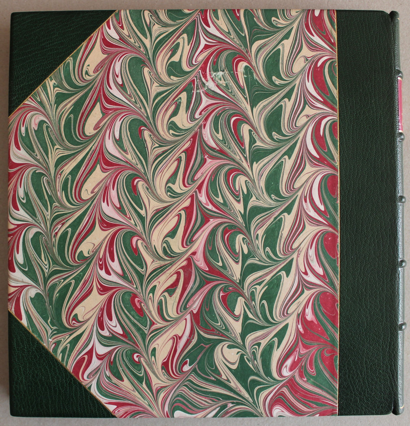 Original dark green half leather binding with gilt titling on the red title label on the spine. Top edge gilt. Coloured end papers. 252 pages, copiously illustrated. In very good condition.