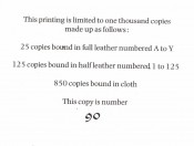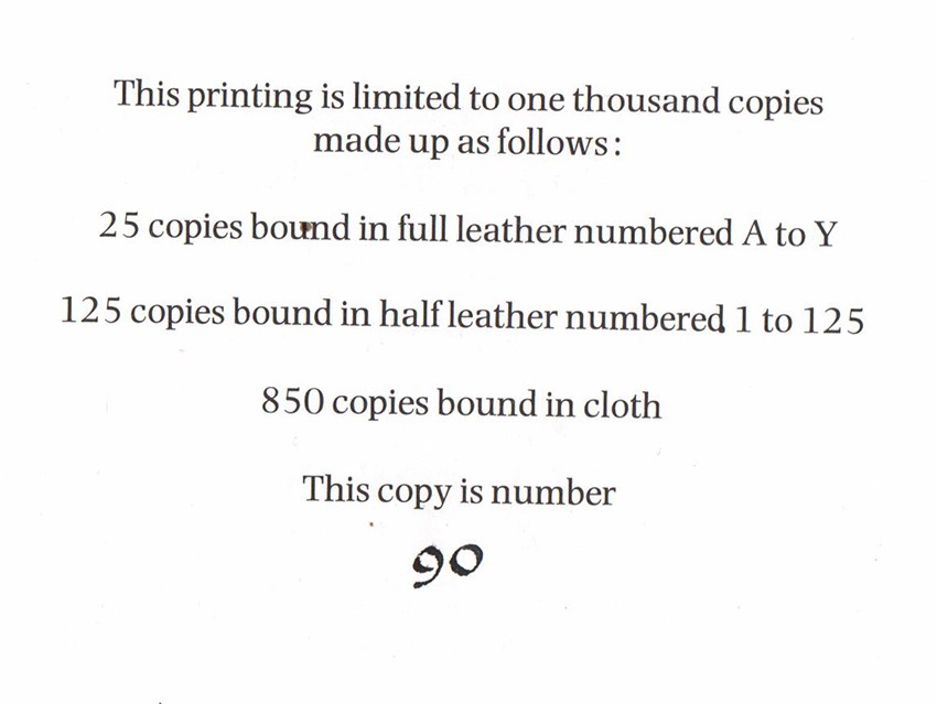 125 copies bound in half leather numbered 1 to 125. This is number 90.