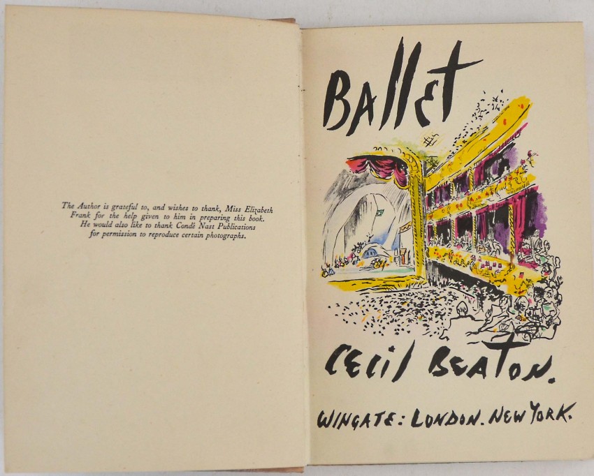 Sir Cecil Walter Hardy Beaton CBE was an English fashion, portrait and war photographer, diarist, painter, interior designer and an Academy Award–winning stage and costume designer for films and the theatre. In this book he reminisces his experiences in Ballet Theatre as photographer and designer. Illustrated with many photographs and drawings by the author. No. 68 of the Limited Edition (number of copies not stated) as per a sticker tipped on to the half-title page and signed by Beaton on the same page.