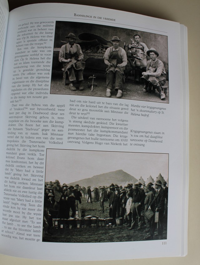 Nommer 4 uit die Erwe van Ons Vaad're - reeks. Die verhale van meer as 31 000 manne wat hulself in onsekerheid in die vreemde bevind het. Die inwoners van die kampe was n deursnee van die bevolking van die twee Boererepublieke en ook rebelle van Britse kolonies asook 'n aantal vrywilligers van ander moondhede wat hulself in die Boerestryd gewerp het en gevang is. Die hoofstukke binne sorteer onder: Tin Town in Ladysmith, Umbilo in Durban, Bellevue, St. Helena, Bermuda, Ceylon en Indie. 414 bladsye.