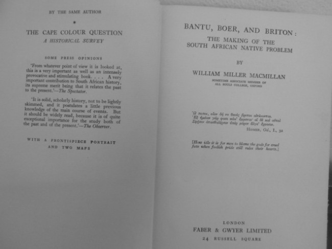 Unusually, this book, one of a pair by the then professor of history at the University of the Witwatersrand, has the Faber & Gwyer imprint on the title-page and the dustjacket; but the better-known Faber & Faber successor on the cover spine.
