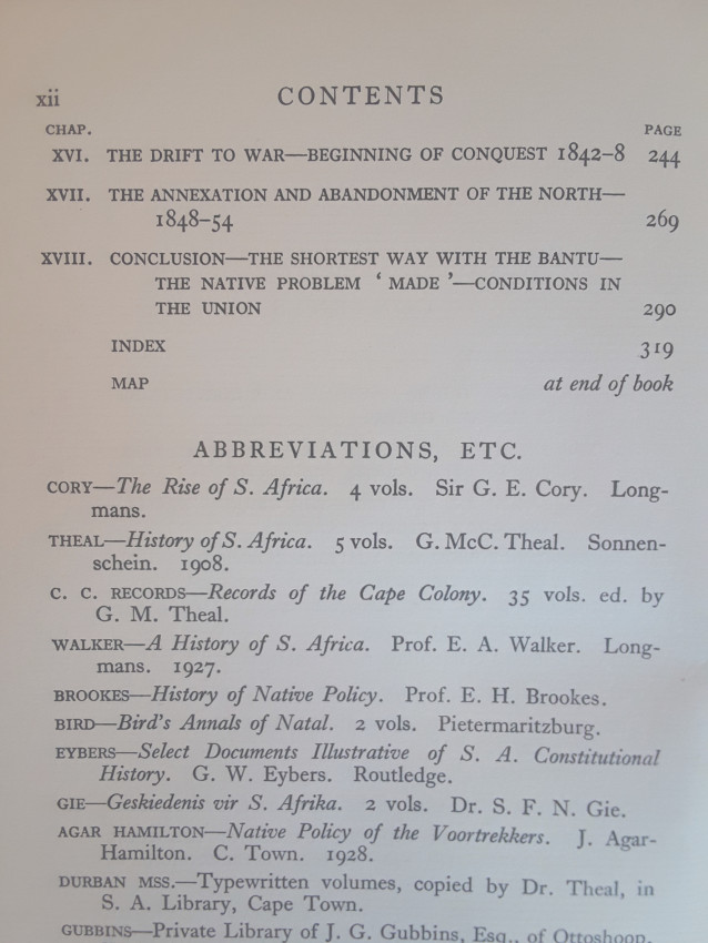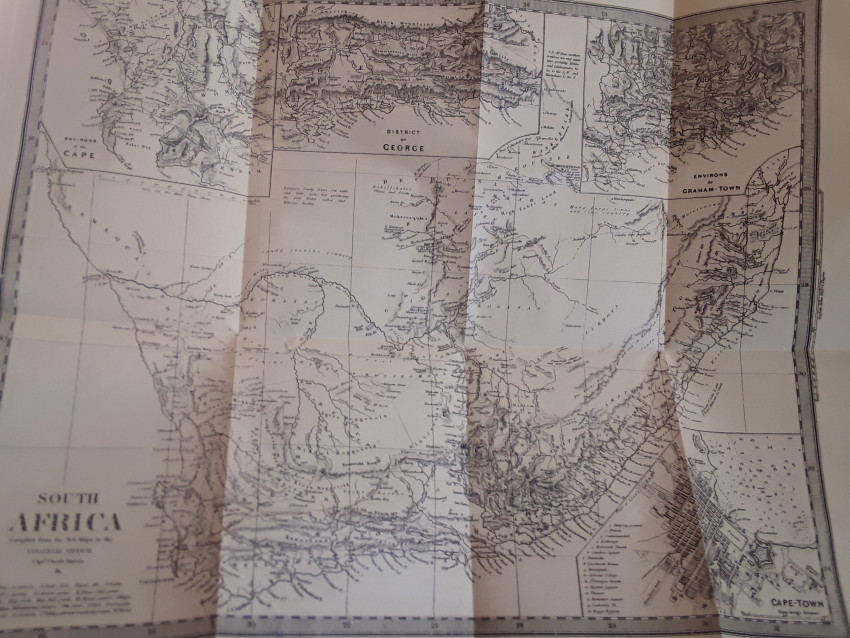 Blue cloth boards with gilt lettering on spine, 328 pages with fold-out map of South Africa at the back. Inscription on inside front, foxing on end papers which have discolored.