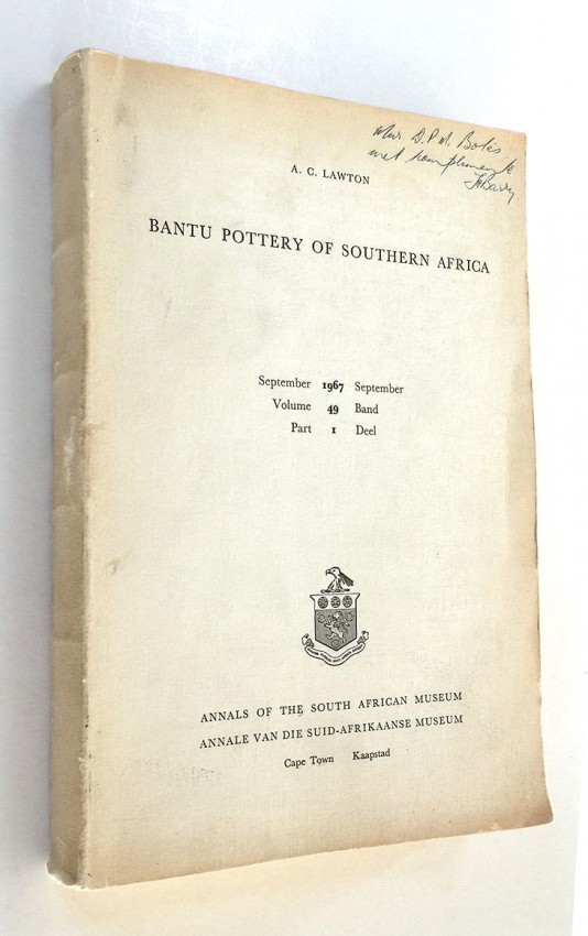 An important and comprehensive work on this topic. 440 pages. In the original printed wraps. With 24 pages of plates at the rear and 64 pages of drawn pot designs. Inscription on the front wrapper otherwise a very good copy. Ex-libris of art historian Warren Siebritz on the front free endpaper with his neat pencil annotations on the same page.