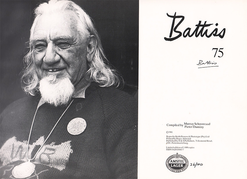 First edition: 32 pages – 7 pages of letterpress including a Preface, Tributes to Walter Battiss, Chronological Biography, Short List of Exhibitions and Publications by Battiss, followed by 8 colour plates and 16 pages of black & white reproducing examples of Battiss’ work, full faux green leather, titled gilt on the upper cover, a very good copy.