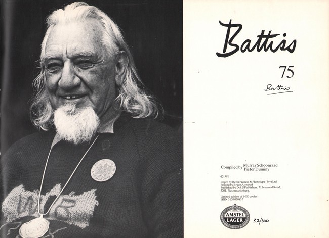 No. 32 of an edition limited to 100 copies signed by Battiss on the title page and with a silk screen print signed and numbered by the artist loosely inserted.