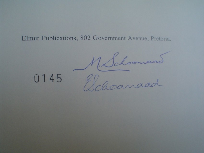 Number 145 of a limited, numbered edition and also signed by Murray and Elzabe Schoonraad.