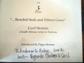 Introduced by Pippa Skotnes. Inscribed to Andrew Verster and Aidan Walsh on title page by Thelma and Cecil. 38p. Colour ills. Catalogue of exhibition held in Cape Town in 2001 of paintings by Cecil Skotnes representing his Norwegian ancestry. Soft cover.
