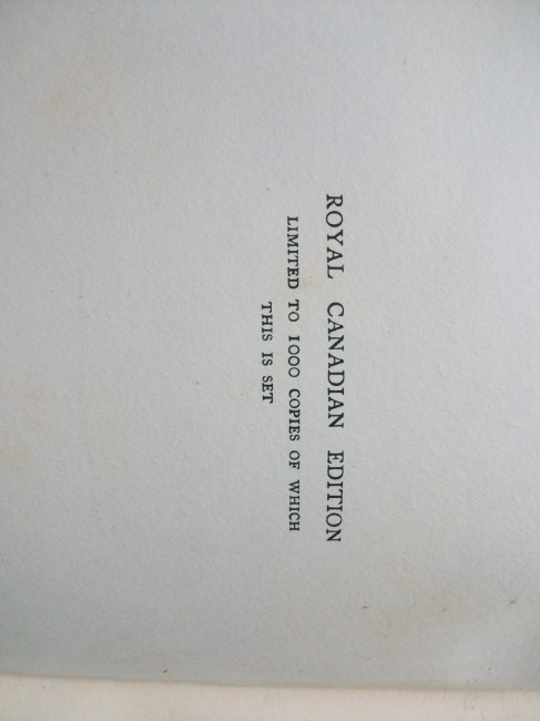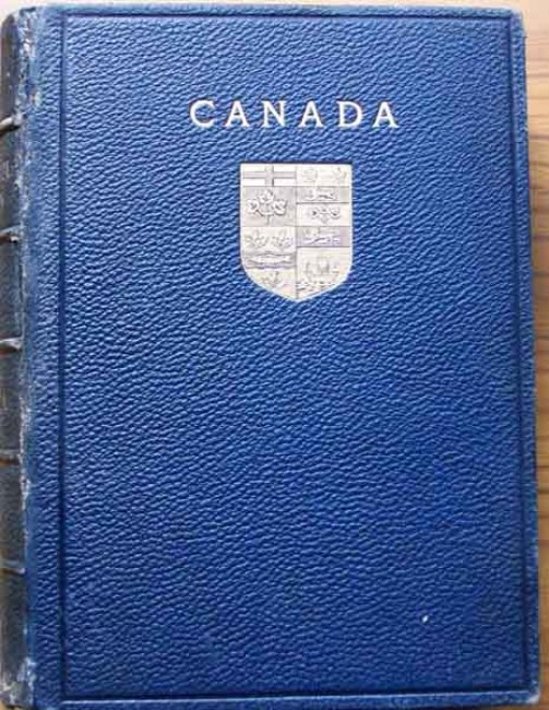 Beautiful Britain.CANADA.Painted by T.Mower Martin,R.C.A.Described by Wilfreed Campbell.Royal Canadian Edition limited to 1000 copies...Unnumbered.Navy Blue Pebble Leather with Canada plus Shield to front cover,and five raised bands to spine with gilt decoration and lettering.Ex Libris label to front endpaper(navy-reinforced).Frontispiece with tissue guard-xviii,plus 272 pages text with 76 further illustrations in colour with tissue guards and folding map to rear.12 Chapters covering entire country and Provinces..Minor repair to original spine hinge.Contents very clean.No Marks