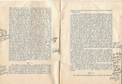 The pamphlet is stapled and is missing the outer printed wrapper. It has some short tears of the front page adjacent to the staples. The front edge of the rear page is a little frayed. Still in decent condition for this fragile item.