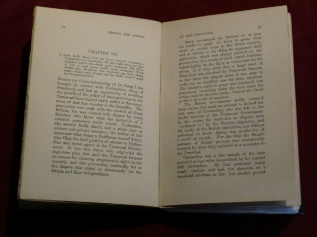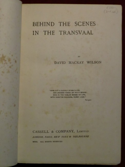 An intriguing book exploring, in nineteen chapters, the psychology of the Transvaal Boer, and 'Colonial ignorance of the Transvaal in its early days', many chapters dealing with the early mining claims on the Rand reefs; as well as notes on the 1884 convention, diggings in the Cape (De Kaap goldfields) and Transvaal including Nelmapius the 'claim jumper', Charlie 'the Reefer', and extensive notes and observations on Kruger himself (including his snubbing of a Kaffir Military band) and many of the gold and diamond mining activities in Cape and Transvaal, chapter 14 'The Boer and the Native - Secrets of the Race hatred', sidelights on slavery, Boer methods, Albesini the white Chief, lost and derelict reefs, why rich reefs were neglected, alluvial finds near Johannesburg, why Boers did not encourage prospecting, etc... and many insights into the life of Paul Kruger. Book in very good condition, bookplate of G.M.Style, some foxing to end-papers, binding good, text clean, fore and bottom edges uncut.