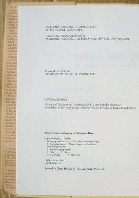 This title seldom appears for sale on auction and this copy is highly recommended if you have a special interest in the belief systems of the San artists.