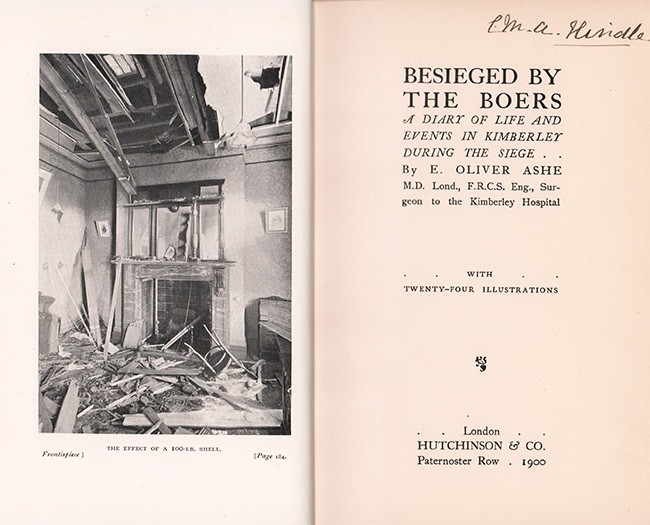 Mendelssohn (Sidney) South African Bibliography volume 1 page 54 : ‘An account of the siege and relief of Kimberley. Dr. Ashe was one of the leading surgeons in the town, and in spite of an extremely heavy practice found time to write a most interesting account of the operations of the Boers.’