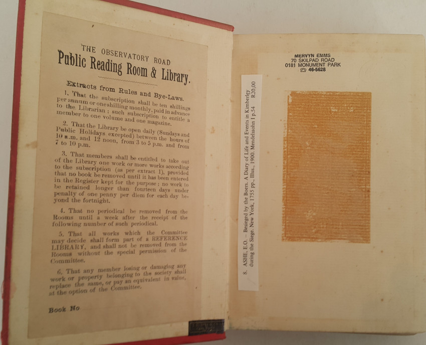 An interesting account of the siege from a diary kept by Mr. Ashe. This copy from the Observatory Reading Room. Spine has been repaired and replacement shows insect damage. Old book plate mark on upper free endpaper. Smudging and occasional foxing throughout. 24 Illustrations - one with marginal tear.Text perfectly legible. Plates in good condition. Binding good and firm. 210 pages.