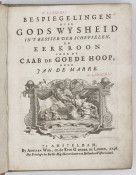 ‘For Afrikaans he is particularly important for his long poem Eerkroon voor de Caab de Goede Hoop in which he describes the settlement at length in three cantos. The first canto sketches the natural beauty and climate of the Cape. The second canto views the Cape from the sailor's point of view when he reaches the safety of Table Bay despite the violence of the southeast wind. The third canto is a glorification of the VOC who saw the importance of the Cape. The poem is clearly written as praise and depicts the civilized colonists and their achievements in glowing terms, while the wild nature and original inhabitants are seen more negatively. Fragments from this poem are included in Gerrit Komrij's anthology Die Afrikaanse poësie in 'n kuisdijk en enkele gedigte.’